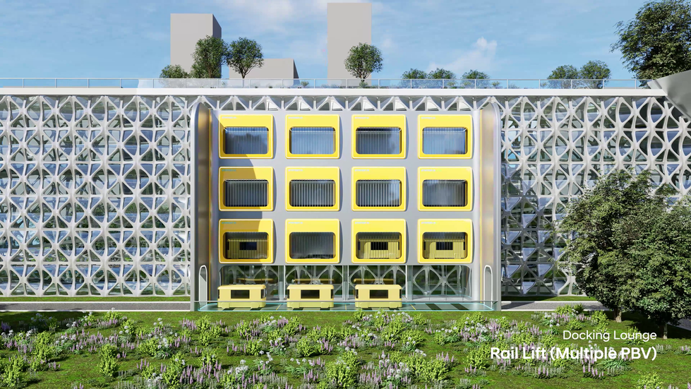 앞선 프로젝트를 통해 미래 모빌리티와 현대도시건축이 나아갈 방향을 제시했다면, 그 방향을 바탕으로 모빌리티와 현대도시건축이 함께할 모습을 병원, 학교, 오피스 건물에 PBV와 UAM이 활용되는 시나리오를 통해 보여주고 있다. 도킹, 용도에 따른 실(PBV)의 변화, PBV간의 연결을 통한 공간의 확장성, 미래 모빌리티를 통한 접근성 등 기술적인 분야에 대한 심도 깊은 연구를 통해 미래모빌리티와 현대도시건축이 결합될 방안을 제시했다.